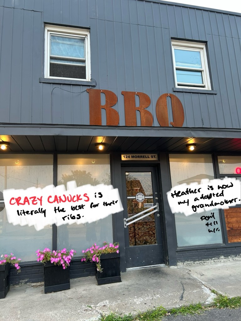 Turns out her name was Heather. She’d been working Ribfest for decades before opening this place—right before the pandemic hit. It took nearly two years to open. I told her it was a blessing they were still around. As I cleaned the bone of a second rib, I realized why the name “Crazy Canuck” had sounded familiar.